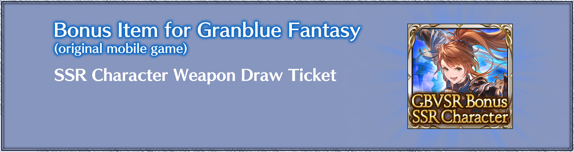 The SSR Character Weapon Draw Ticket for Granblue Fantasy (original mobile game) is included in the following contents purchased from the PlayStation™Store: