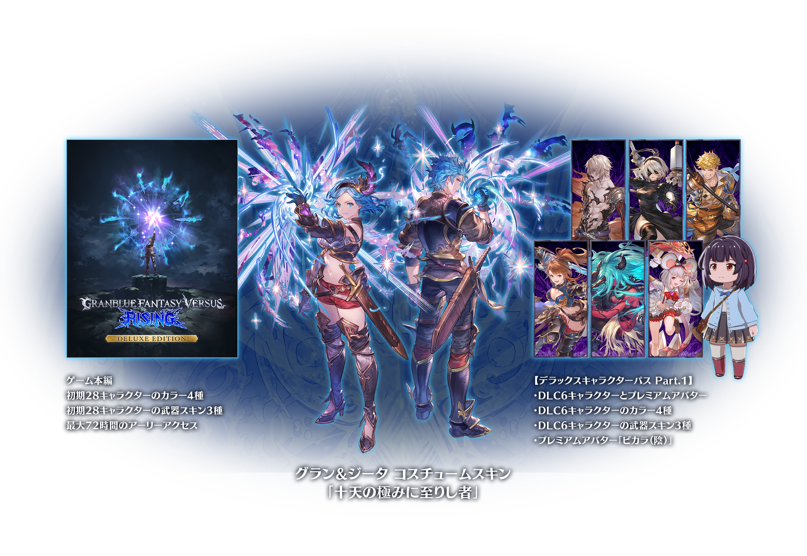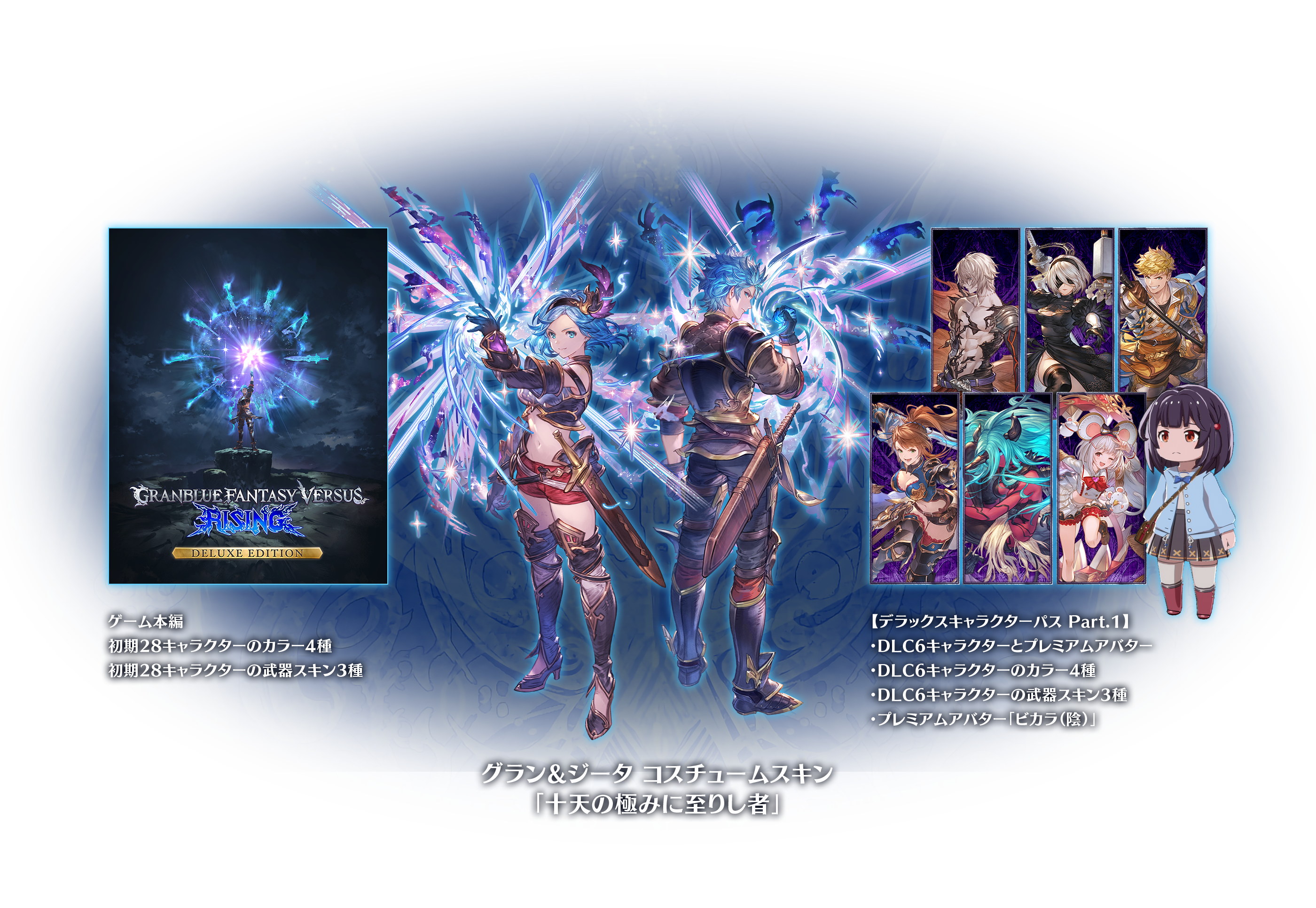 -DLC6キャラクターとプレミアムアバター-DLC6キャラクターのカラー4種-DLC6キャラクターの武器スキン3種-コスチューム「十天の極みに至りし者」(グラン)-コスチューム「十天の極みに至りし者」(ジータ)-プレミアムアバター「ビカラ(陰)」